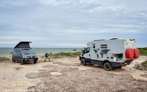 Auf dem Weg zur Coffin Bay entdecken wir einen schönen Strand in den Dünen, der sehr einsam und abgelegen ist. Dort machen wir eine Pause von zwei Nächten und kommen ein wenig zur Ruhe. Das lange Fahren jeden Tag ist schon ermüdend.