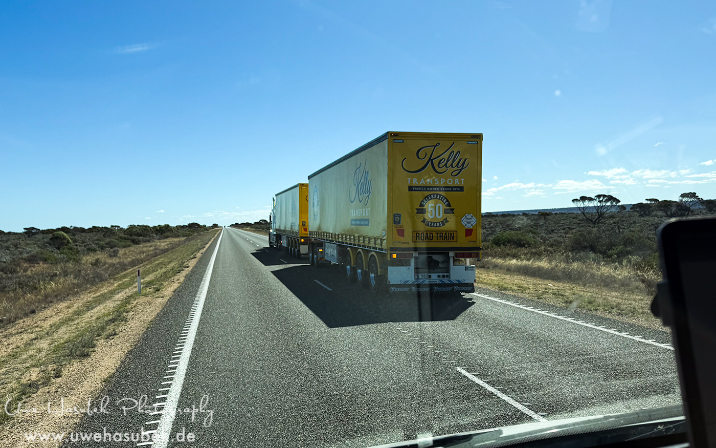 Die Nullarbor ist wie immer sehr lang und langweilig. Die Vegetation ändert sich kaum und die Straße fordert einen nur dadurch, dass sie so eintönig ist. Uwe wird krank und fühlt sich gar nicht wohl. Das macht es alles nicht einfacher. Wir fahren und fahren und fahren.