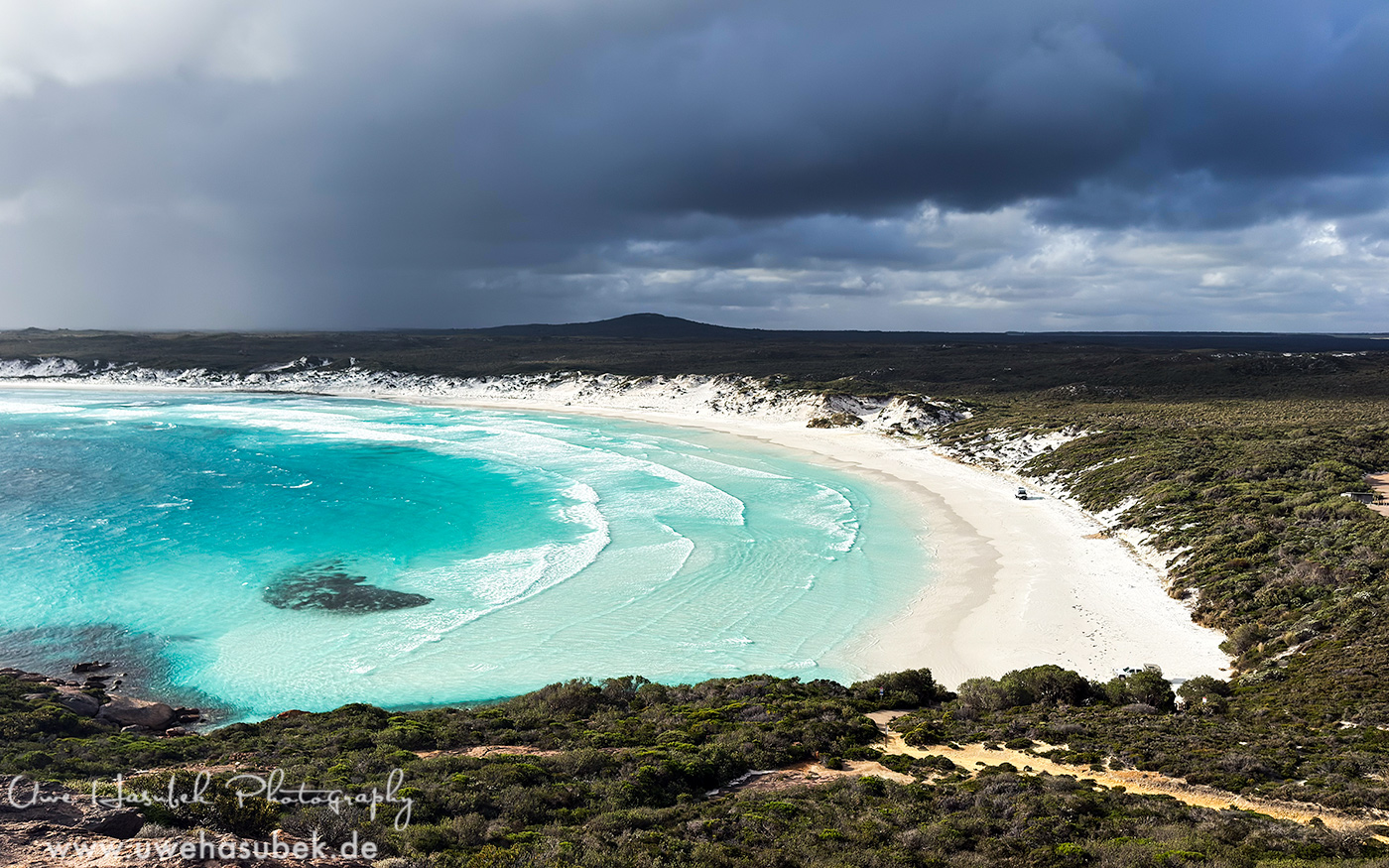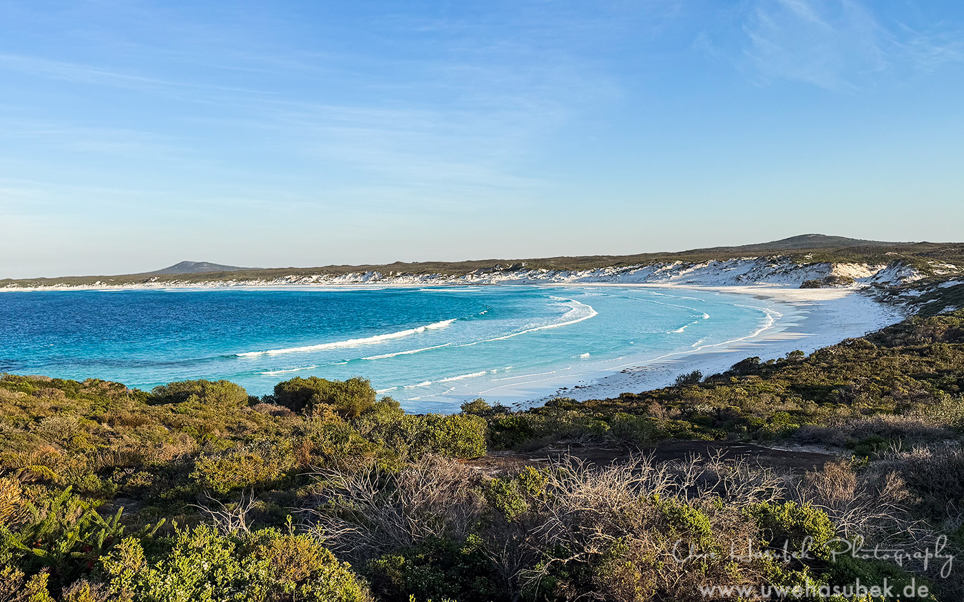 Nach diesem schönen Erlebnis beenden wir die Nullarbor und fahren endlich nach Wharton Beach. Der Strand ist so schön wie immer aber irgendwie fester. Wir erfahren, dass ein Sturm im August ca. 40cm Sand abgetragen hat. Dabei ist an einer Stelle ein ca. 7000 Jahre alter Baumbestand zu Tage getreten. Es handelt sich dabei nur um Baumstümpfe, die sich schwarz in den Himmel strecken. Wären sie weiterhin unter dem Sand geblieben, wären sie wohl irgendwann versteinert.